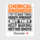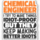 Funny Chemical Engineer Sayings "Chemical Engineer I Try To Make Things Idiot Proof But They Keep Making Better Idiots". Grab this Funny Chemical Engineer design as a funny gifts for an awesome mom, dad or friend.