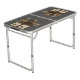 Not that I've had experience to buy that many beer pong or ping pong tables in my life, but I know a good quality product when I see it! This beer pong table is sturdy and solid and still lightweight enough to be portable. It folds and unfolds smoothly for easy storage or setup. From order to arrival here, the time was half of what was estimated, and that was during the holiday season. And -- most importantly -- the recipient LOVED it! I would definitely purchase this product again or other products by the maker Hampton Technologies , should an occasion to do so arise. The printing is beautiful! The blues and reds are deep and rich and the white "chalk look" is clean and crisp,. The photo (taken in low light) doesn't really do it justice. We know it's printed, but take a step back, and it really does look like chalk on a blackboard. To get the blue background like we did (instead of the traditional green chalkboard background), use background color #26306A. :)