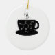 Lightweight, smooth, pure white ornament with nice sheen. Perfect size to be seen from across the room ... and to attract closer inspection! Price was great for ordering enough for the whole family! Clear, bold black design just as requested. Matches the order exactly. Just so nice!