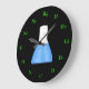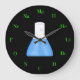 This chemistry wall clock features a chemistry flask filled with a bubbling liquid on a black background. The symbol for the chemical element whose atomic number equates to the time on the clock is used making for a very fun clock for a chemistry teacher or for anyone who loves chemistry. Copyright Kathy Henis