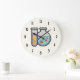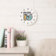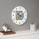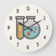A clock with a cute illustration of a test tube holding yellow liquid and a rounded flask/beaker holding green liquid with red bubbles.