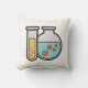 Pillow with a cute illustration of a test tube holding yellow liquid and a rounded flask/beaker holding green liquid with red bubbles.