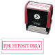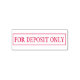 This elegant rubber stamp design features the message "FOR DEPOSIT ONLY". It might be used by an individual or an office administrator to easily add a restrictive indorsement to a cheque.