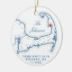 Celebrate your first Christmas as a married couple with this keepsake ceramic ornament featuring a stunning Cape Cod map theme, perfect for commemorating your wedding at Chequessett Club, Wellfleet Preservation Hall, or The Holden Inn in Wellfleet, MA. Personalize it with your wedding details on the front and a cherished photo on the back. This elegant ornament is a timeless reminder of your special day and a beautiful addition to your holiday décor. Artwork by Coastal Map Designs.