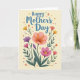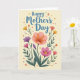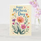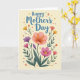 On the front of the card is a cream-colored background that feels sunny and gentle, with a floral arrangement that suggests a caring, close bond ❤️. Near the top, the words “Happy Mother’s Day” sit prominently in flowing cerulean lettering, standing out clearly against the light backdrop. At the center is a large coral‑pink blossom with softly shaded petals that look almost translucent, like it’s glowing from within. Around it, smaller stylized flowers in fuchsia, soft lavender, bright orange, and golden yellow cluster together as if leaning in like friends. Dark teal stems and neatly shaped leaves weave through the bouquet, guiding your eye in a calm, affectionate rhythm. Scattered around the flowers are tiny dot accents and mini floral marks in pink, orange, purple, and yellow, adding a light celebratory sprinkle 🌼. Soft, even lighting keeps the colors smooth and balanced, with crisp edges and painterly textures throughout. Small confetti-like dots float near the blossoms, especially around the outer edges of the bouquet.
