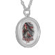 I chose gold plated so that the metal would not react with my skin oils and perspiration. But, I changed the necklace from the gold plated one to a sterling silver. My skin cells will tarnish the silver. But it will not look as bad if some portion of the gold plated necklace somehow became compromised. Zazzle did a find job turning the picture into a pendant for me. As you can see, the colors and the printing of the final product, match the preview. The picture I took is not very clear. But I am pleased with the product I received.