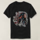 My 11 yo wore adult XL (5’7” 165#). The 8yo is small framed. She wore adult small and tied it in the back. Grandma wore adult large with long sleeve shirt underneath. Tall girl adult medium. Dark haired male adult large. Good quality dark Heather gray, Gildan brand shirt. -it was next up from basic choice and cost about $20 per shirt. Not too thick or thin. Washed and dried well, no major shrinkage. Not see-through. Can wear a bra under it fine. Screen print is just as shown and well done, front and back.