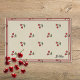 Add style and color to your dining table with this cherry-pattern placemat featuring a clean red boho-style border. The warm cream background and small cherry clusters create a sweet, homey look perfect for kitchen tables, summer meals, brunches, or everyday dining. Durable, easy to wipe clean, and fully customizable—add a name for a personalized touch.