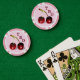 Radiate fun and playful energy with these cherry poker chips. This unique design features tones of scarlet, blush, violet, chartreuse. It is easy to change the text to personalize. I created this pattern from an image in my original acrylic painting.