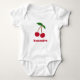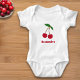 A baby bodysuit with red cherries, its green leaves and a customizable text: a nice gift for a newborn!