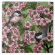 Cherry blossom and chickadees on green ceramic tile
