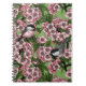 Cherry blossom and chickadees on green notebook