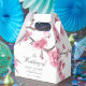 A unique cherry blossom-themed set of white gift favor boxes tailored specifically to your future wedding on the beautiful coast, island, or even a summertime event. Your wedding details are on the front, and your unique thank-you message to your wedding guests is on the reverse side.