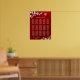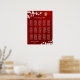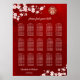 This Chinese wedding seating chart poster features a gold double happiness symbol and white cherry blossoms on a dark ruby red background. With custom texts for 150 names. Matching Wedding products available.