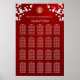 This Chinese wedding seating chart features a gold double happiness symbol and white cherry blossoms on a dark ruby red background. With custom texts for 200 names. Seating chart boards with text for less guests available and matching wedding products available.