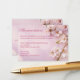 Cherry blossom elegant wedding accommodations business cards with customizable text printed on pink background