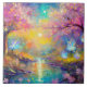 Cherry Blossom Fantasy Sunrise Stream Ceramic Tile