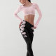 Spring cherry blossom botanical pink flowers. Custom stylish floral design with a black background.