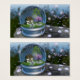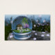 Inside a "snow globe" is a spring landscape with a cottage overshadowed by maple and cherry trees. The surrounding grassy field is filled with spring flowers, snapdragons and cornflowers in pastel colors. Roses and ivy climb the wall of the little house. The cherry tree is in full bloom, and instead of snow there are cherry blossoms swirling around in the globe and blanketing the grass.
