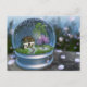 Inside a "snow globe" is a spring landscape with a cottage overshadowed by maple and cherry trees. The surrounding grassy field is filled with spring flowers, snapdragons and cornflowers in pastel colors. Roses and ivy climb the wall of the little house. The cherry tree is in full bloom, and instead of snow there are cherry blossoms swirling around in the globe and blanketing the grass.