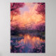 Enjoy this digital piece of art while taking in the peaceful beauty of nature. The warm heat of a setting sun bathes a secret pond hidden among blooming cherry blossoms. The serene setting urges you to take a moment, enjoy the silence, and recognize the transitory beauty of life. Allow the vivacious hues and serene reflections to carry you to a tranquil location.