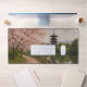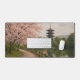 Immerse yourself in the elegance of springtime in Japan with this desk mat featuring a cherry blossom-lined path beside a reflective body of water. A majestic multi-tiered pagoda rises in the background, framed by verdant hills and trees. The overcast sky adds a soft, tranquil mood, making this mat a perfect blend of natural beauty and cultural heritage. Ideal for creating a calming workspace that inspires mindfulness, creativity, and appreciation for timeless landscapes.