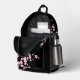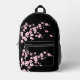 This floral feminine girls back to school backpack features pretty pink cherry blossoms an butterflies on a pink black background. Customize it with your name at the side.