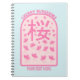 A Victor illustration of pink cherry blossom flowers falling to the ground. The text reads cherry blossoms as does the kanji Japanese text in the centre of the pink design..