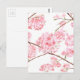 Cherry blossom pink flowers painting postcard