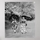Old 1920s photo of Japanese children, in traditional dress carrying umbrellas, walking amongst cherry blossoms. Tidal Basin, Washington, D.C. Photograph taken March 28, 1925. National Photo Company Collection. LOC original medium: glass negative.