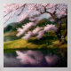 This AI-created downloadable art features a panting of cherry blossom tree at a lake.