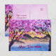 Bright pink and white cherry blossoms on a pair of trees add color to the scene by the lake at dusk, just after the sun has set, painting the mountains in shadow and bathing the landscape in gradated tones of pink, yellow and purple. Mist rises from the deep blue lake. It is almost nightfall. Hand-painted in acrylic and watercolor. (Important Note: The image on the product is a print of my original, hand-painted acrylic painting. The product itself is not painted by hand.)