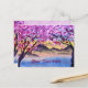 Cherry Blossom Trees Lake Dusk Mountains Landscape Postcard