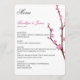 Cherry blossom wedding menu with customizable text printed on white background
