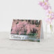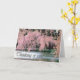 Bereavement card featuring a large pink flowering cherry tree by a river.