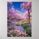 Cherry Blossoms, Pink Flowers, and a Gentle Stream Poster