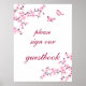 Pretty pink cherry blossom and two cute butterflies on a white background with a sign guestbook text.