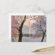 The Washington Monument stands tall amid blooming cherry blossom trees. A tranquil body of water reflects the vibrant colors of the season.