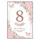 Cherry Blossoms Rose Gold Butterflies Quinceañera Table Number