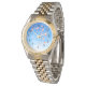 The watch is very nice, the picture is great and the watch looks like quality. The only problem I am having with it is that it is a little too large, and I also can't figure out how to open the clasp. No directions came with it. Very good. The printing is perfect and the watch keeps good time.