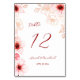 This wedding table number cards feature watercolor painted cherry blossoms on a white background. With text boxes to add a list of guest names.