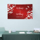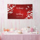 Pretty white cherry blossoms and two cute butterflies on a shimmering red background.