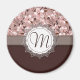 An elegant split design with a top pattern image of delicate pink cherry blossoms over a solid mauve purple bottom, with a textured ribbon and a customizable lace monogram seal in the center.