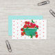 This business card has a bowl of red cherries in a blue bowl with red dots. There is plenty of room for your personal messages on the front and back. Easy to customize font style, color and size, or if you remove it altogether these can be used as tags. Coordinate with my other office products including clipboards, labels and stationery. This design is also available on my kitchen and tabletop items including napkins, plates and towels.