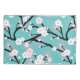 Floral pillow case in turquoise, pink, white, and black featuring pretty cherry blossom.