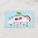 Cute cherries sitting on a cloud raining hearts with rainbow on a removable blue background on this home baking or bakery business card for a cookies, cake, cupcake, or pie business.