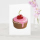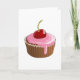 A delicious looking cherry cupcake. This design is good enough to eat. The design is of a cupcake that has pink icing and then a cherry on top. This cherry cupcake design looks great on these greeting cards