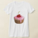 A delicious looking cherry cupcake. This design is good enough to eat. The design is of a cupcake that has pink icing and then a cherry on top. This cherry cupcake design looks great on this womens t-shirt. Perfect for yourself or as a gift