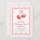Cherry First Pink Bow preppy 1st birthday Invitation