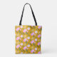 Cherry Floral Greenery Pattern Yellow Pink Tote Bag